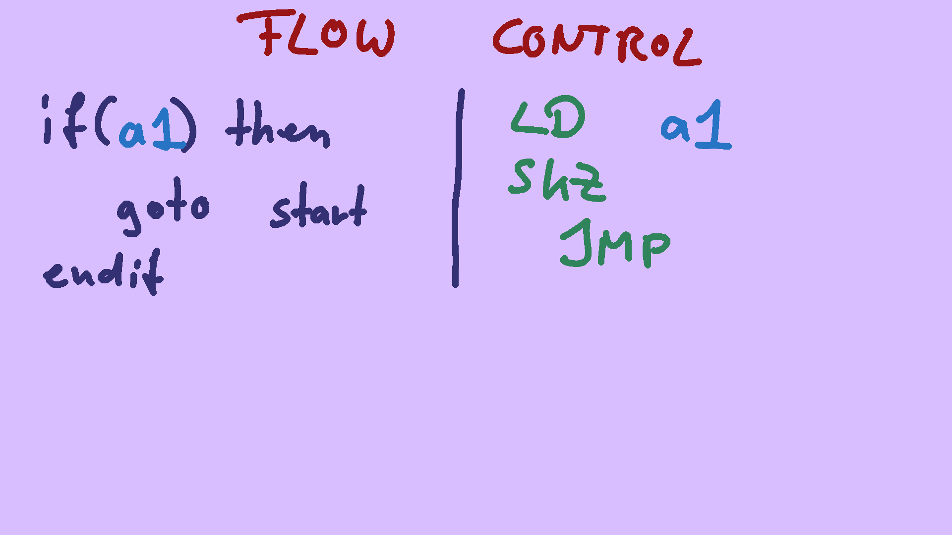 In this example, we look at some memory location, and if it contains a zero, we skip the jump, if it contains a one, we execute the jump.