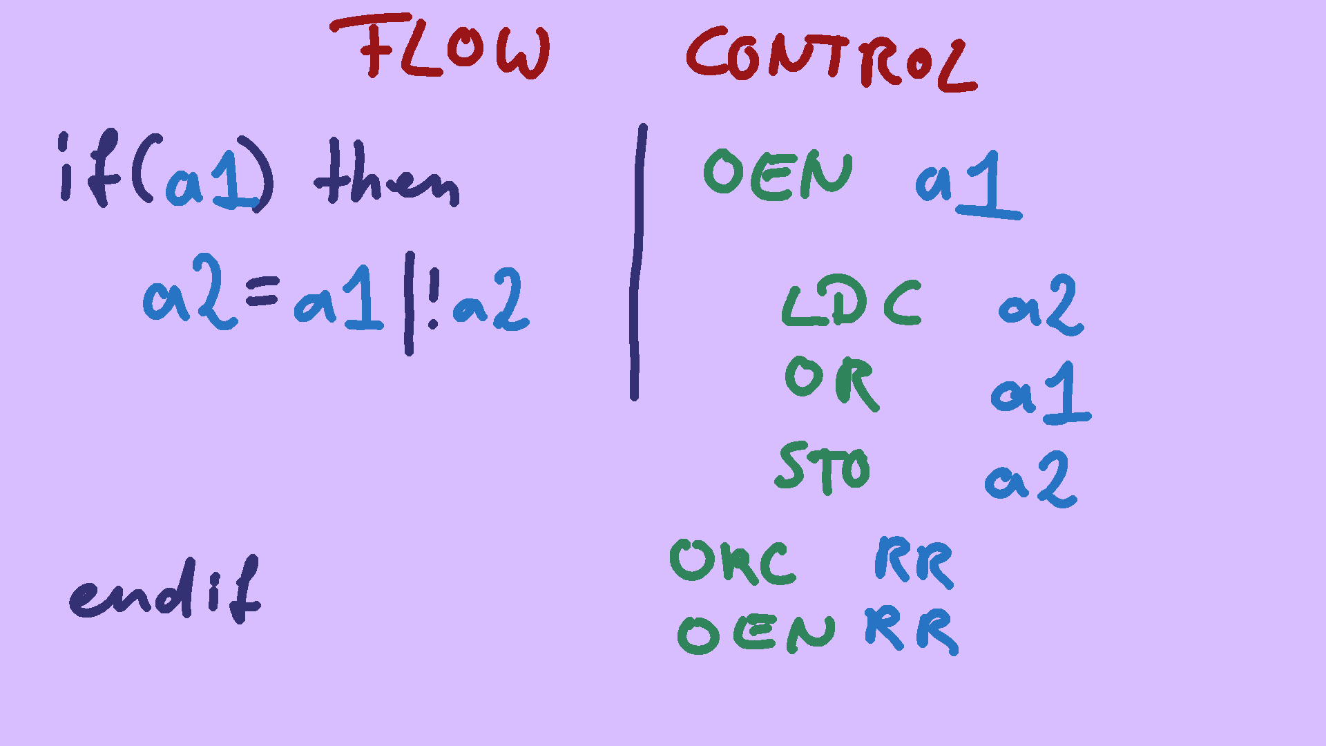 But if you want to skip more than one instruction, this gets tedous if not outright impossible. Take this example: if some_address is one, we want to load-modify-store other_address. This requires multiple instructions. And we can't place a SKip-if-Zero instruction in front of each, because we modify RR in between, which SKZ uses to determine when to skip.